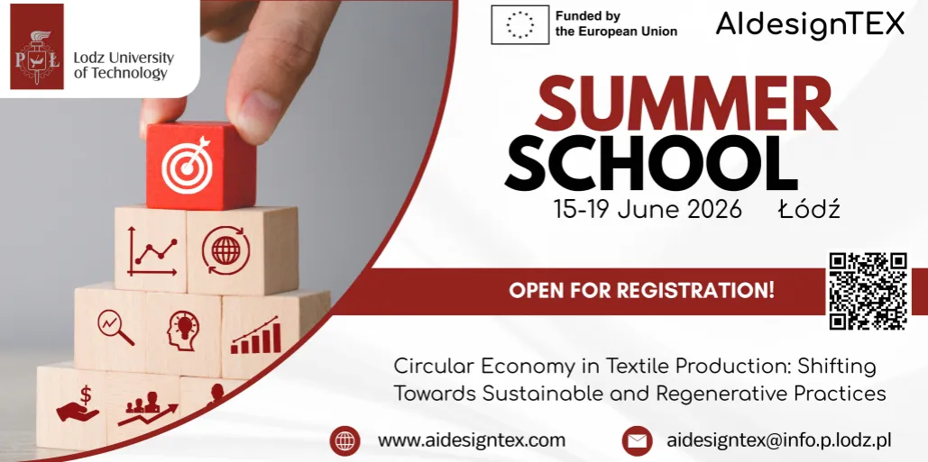 Wydział Włókiennictwa i Wzornictwa PŁ organizuje w Łodzi w dniach 15-19 czerwca 2026 Summer School - „Circular Economy in Textile Production: Shifting Towards Sustainable and Regenerative Practices”.