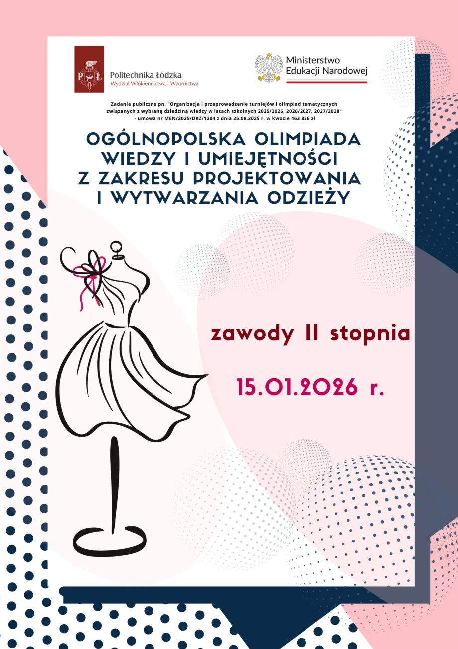 W dniu 15 stycznia 2026 r. przy Wydziale Włókiennictwa i Wzornictwa Politechniki Łódzkiej odbył się II etap Ogólnopolskiej Olimpiady Wiedzy i Umiejętności z Zakresu Projektowania i Wytwarzania Odzieży.