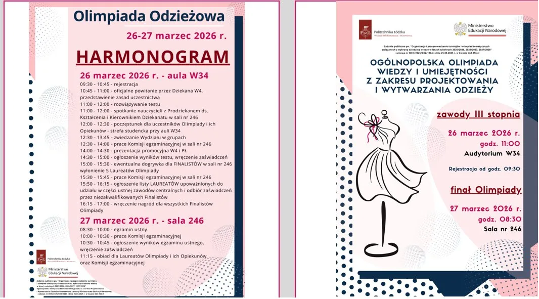 W tym czasie odbyła się kolejna edycja Ogólnopolskiej Olimpiady Projektowania i Wytwarzania Odzieży 2025/2026, objęta patronatem Ministerstwa Edukacji Narodowej.