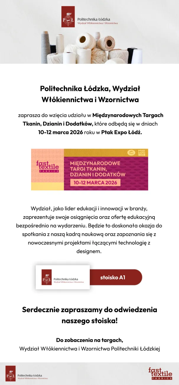 Wydział Włókiennictwa i Wzornictwa PŁ oficjalnym Partnerem Międzynarodowych Targów Tekstylnych Fast Textile Fabrics 2026.